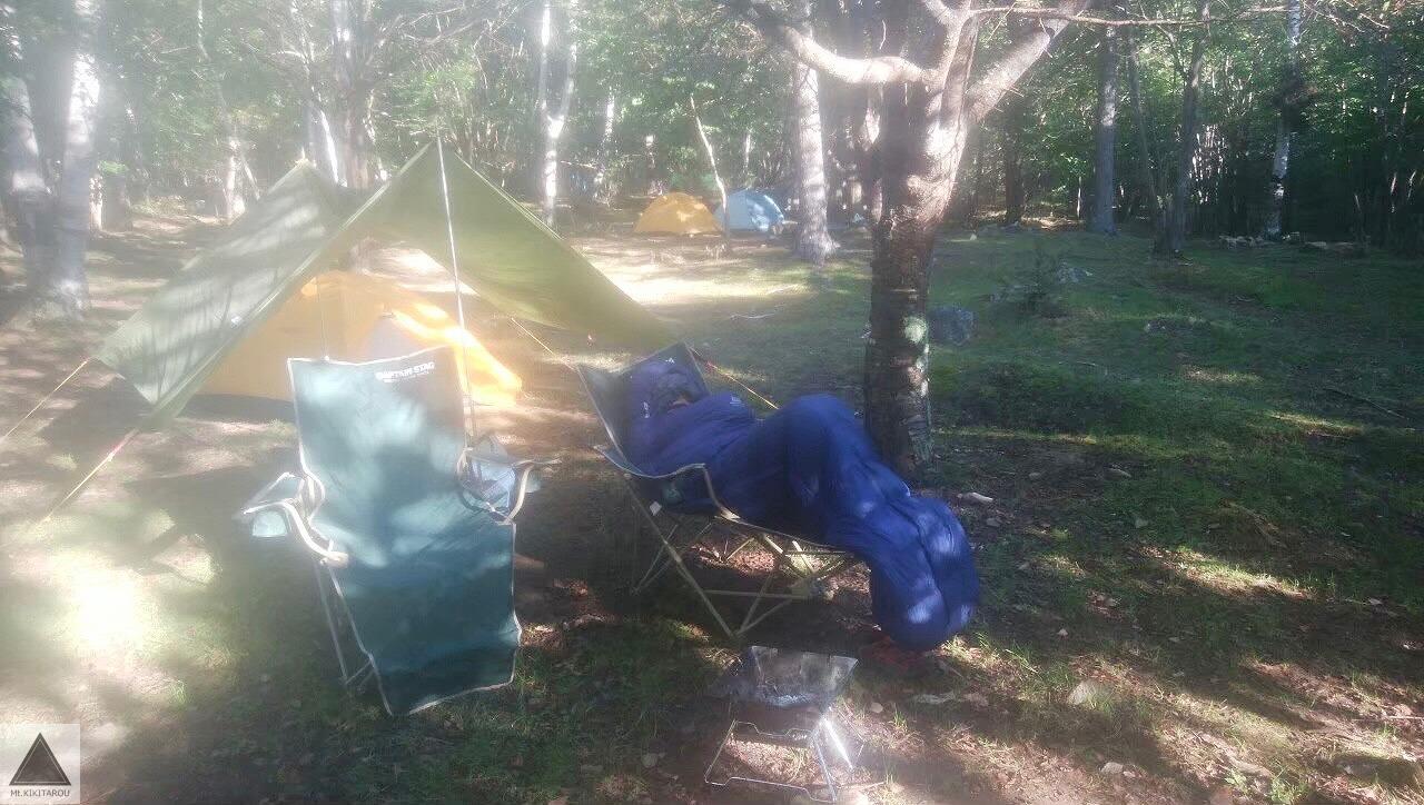 そんなとき、このイスの上で寝袋にくるまってのんびり朝の時間を過ごしています。